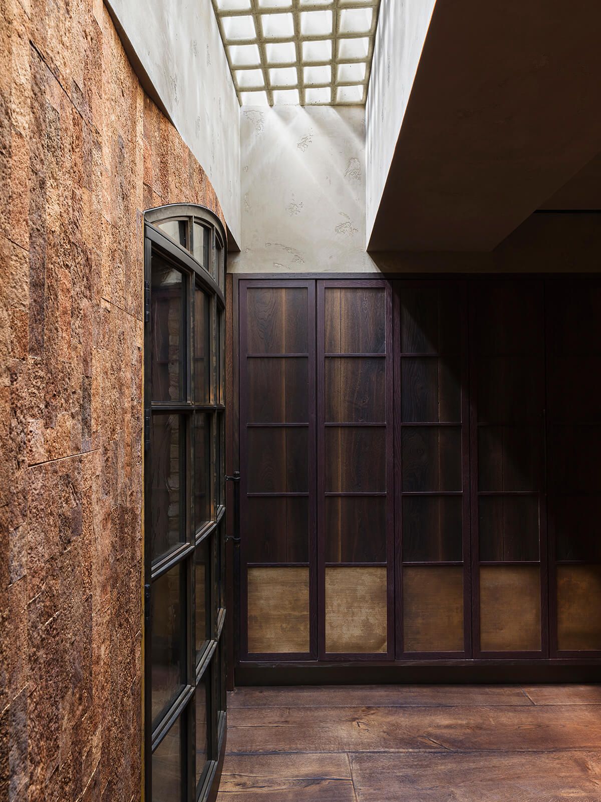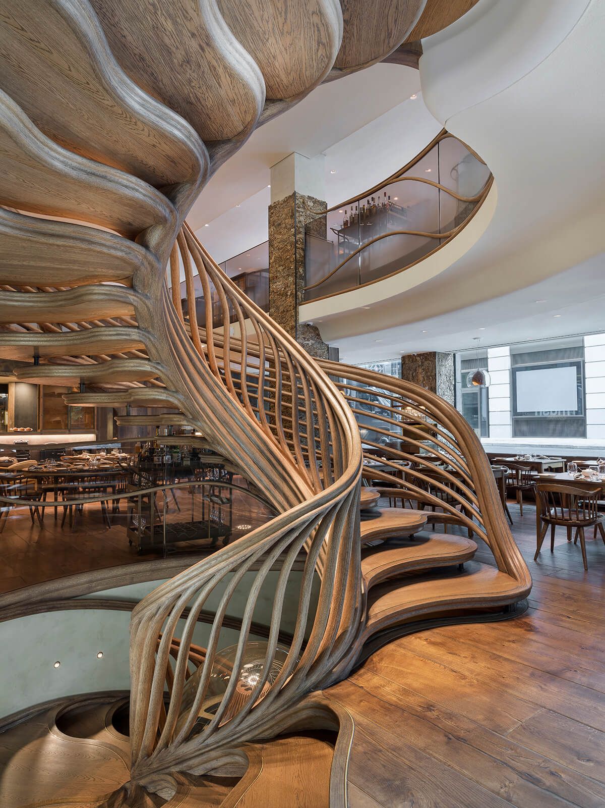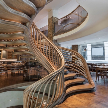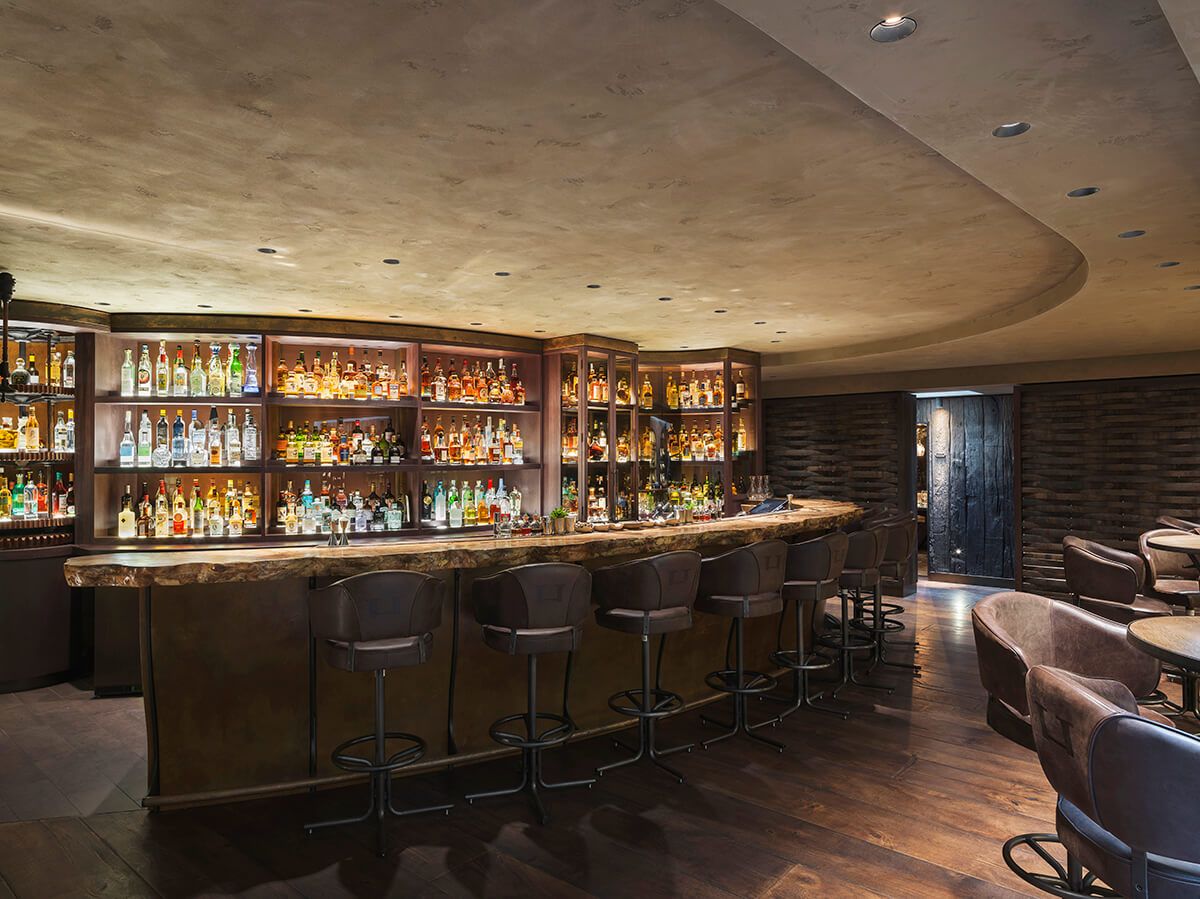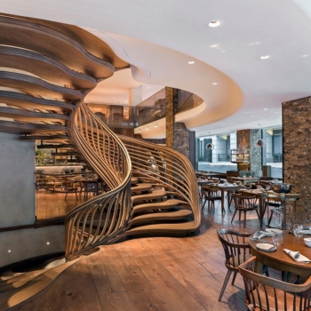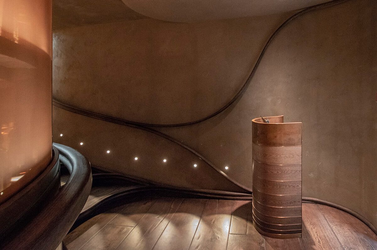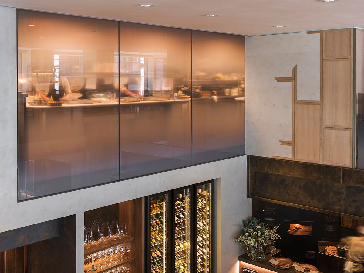 We used a variety of plasters in a weathered style of finish in most areas of this three storey restaurant, kitchen and bar. The staircase wall was blended from the top to bottom over three floors from an off white all the way to a dark brown in the basement bar.