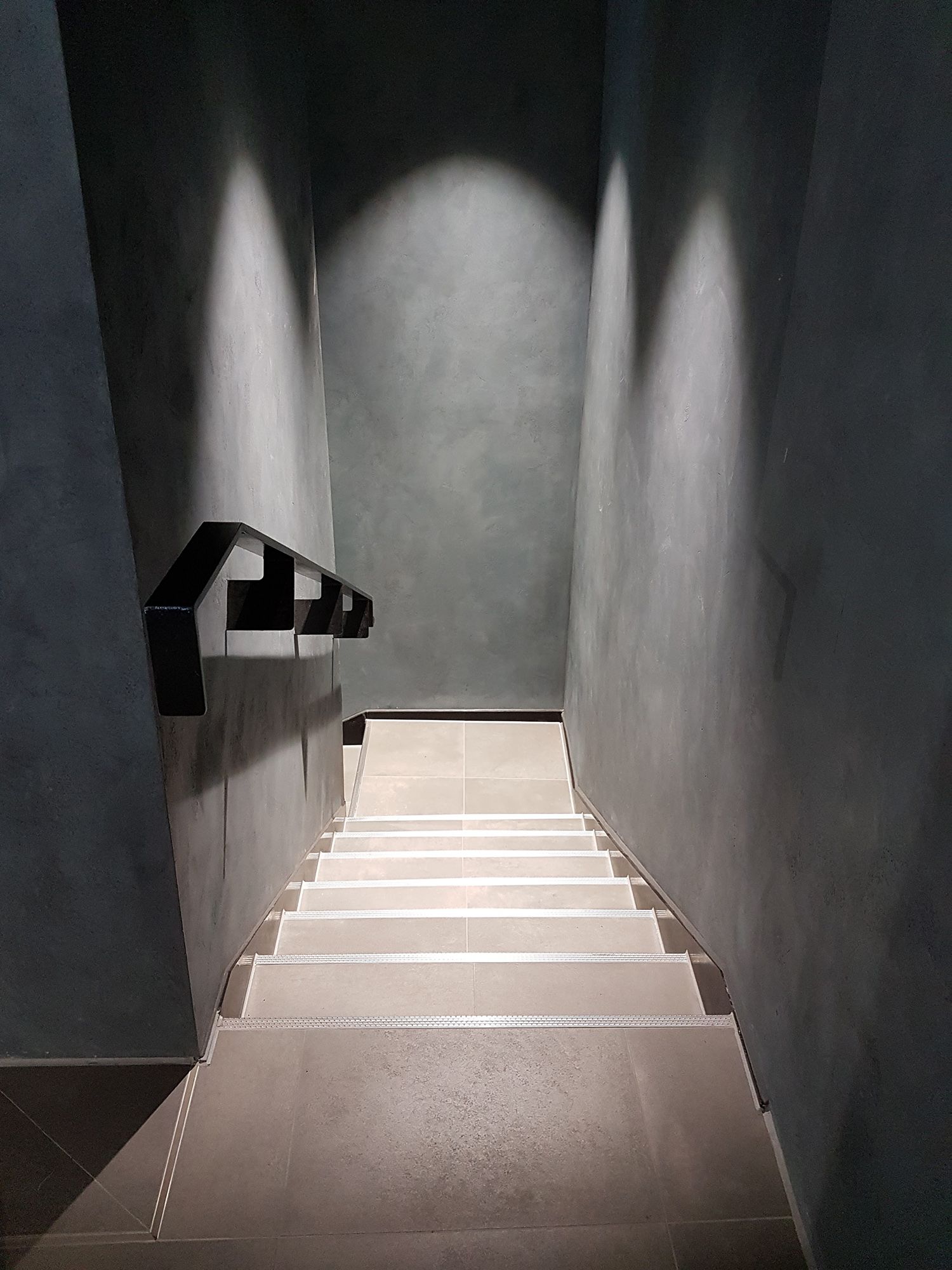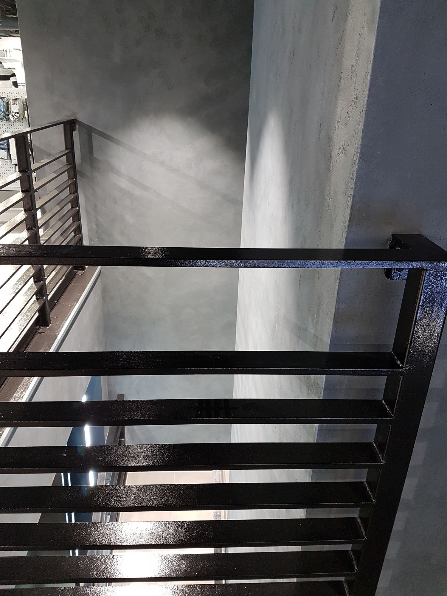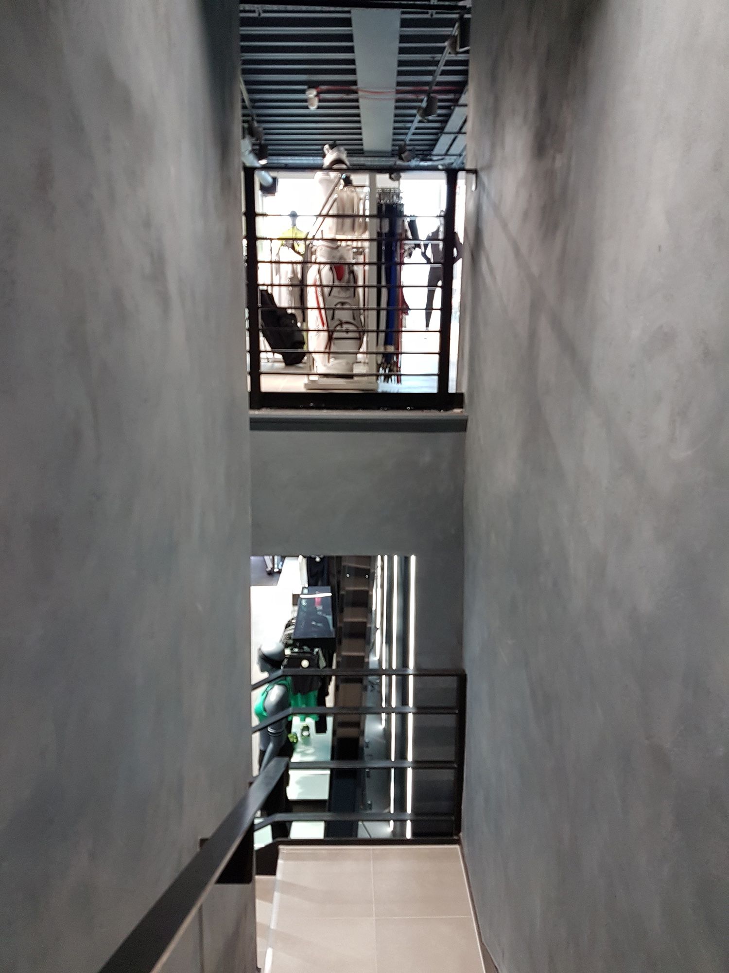 A ski wear shop that received our Teocrete distressed concrete finish in the stairwell.