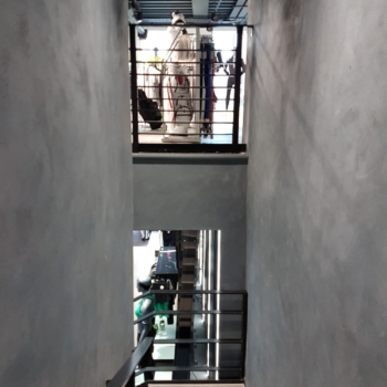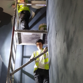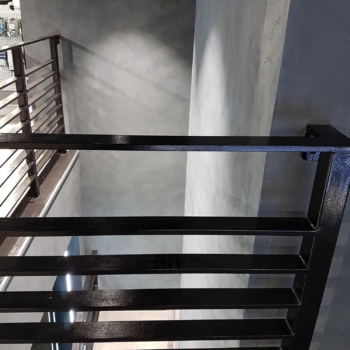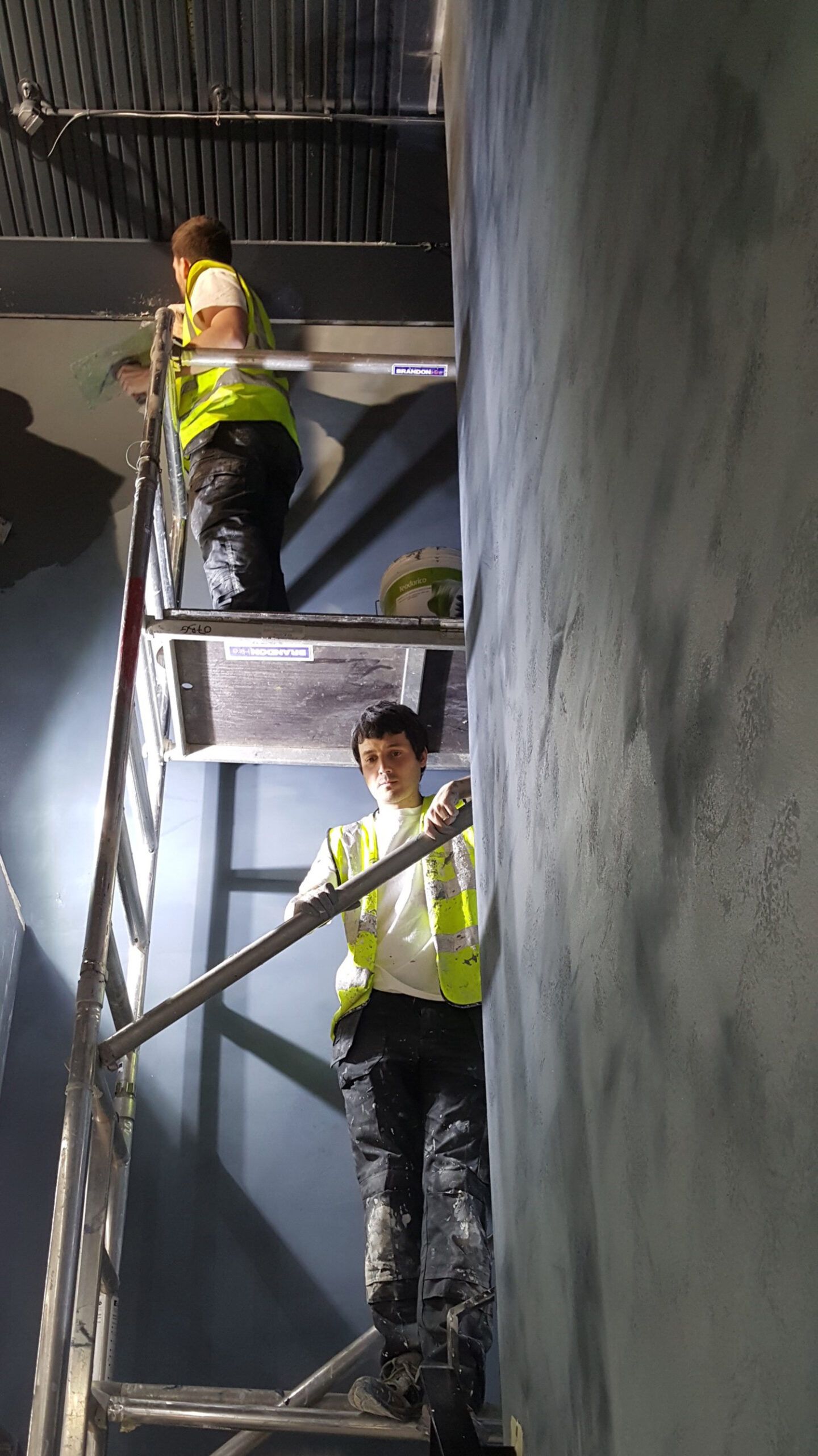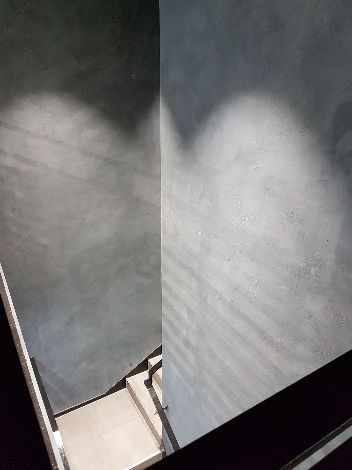 A ski wear shop that received our Teocrete distressed concrete finish in the stairwell.