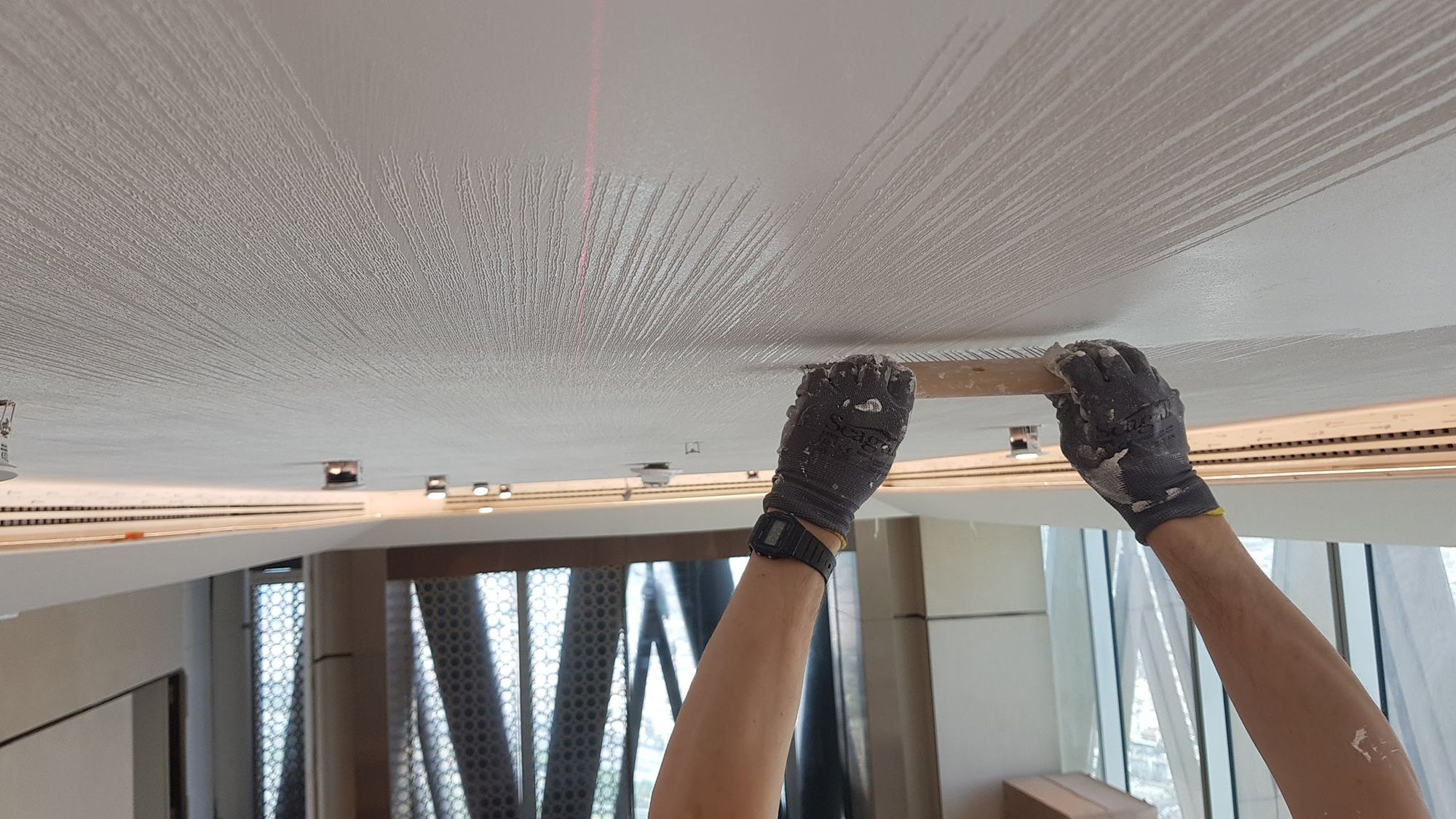We applied our Stream and Pelago finishes to 40 ceilings within the business sector of this 40 storey tower, pictured.