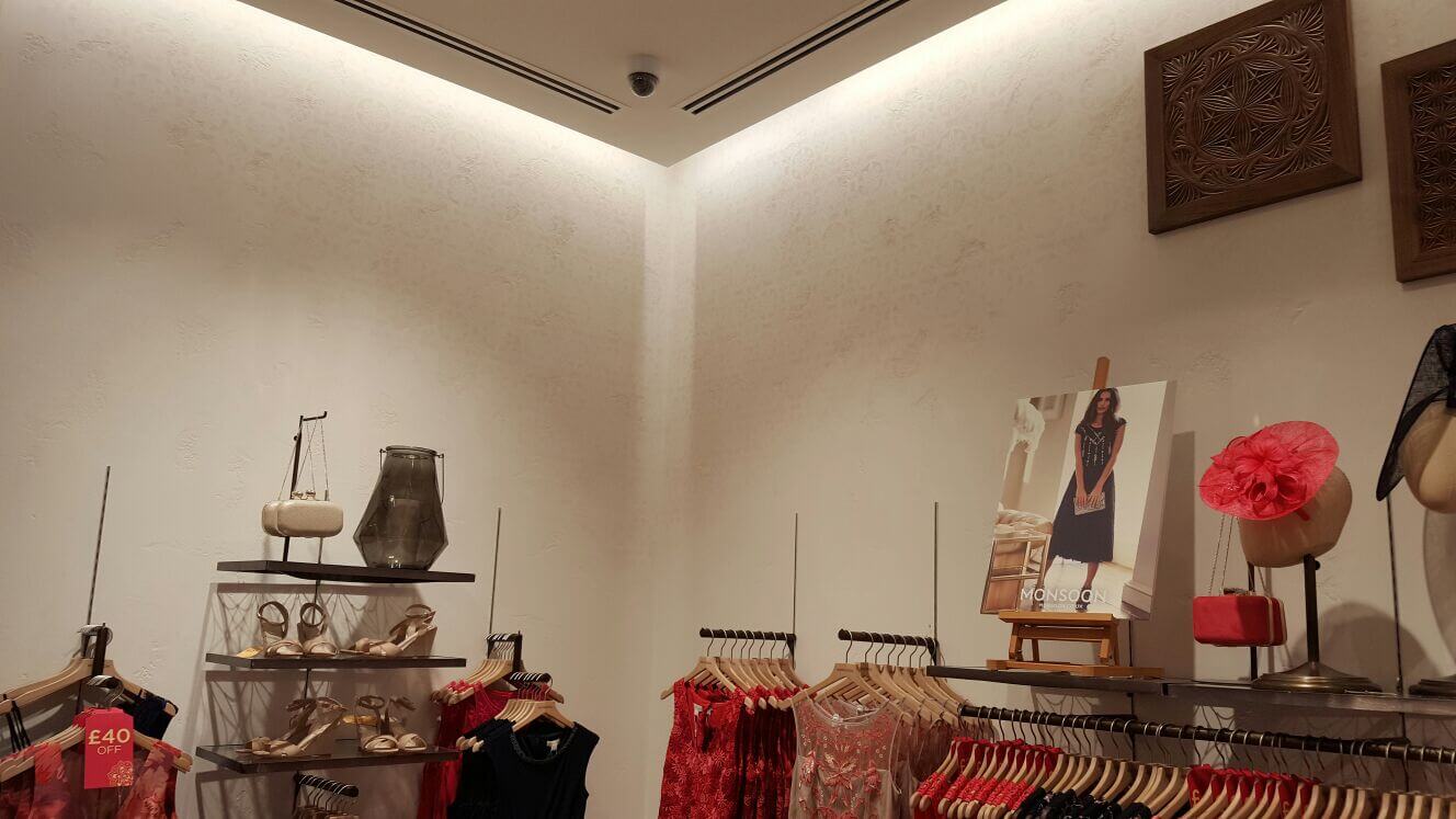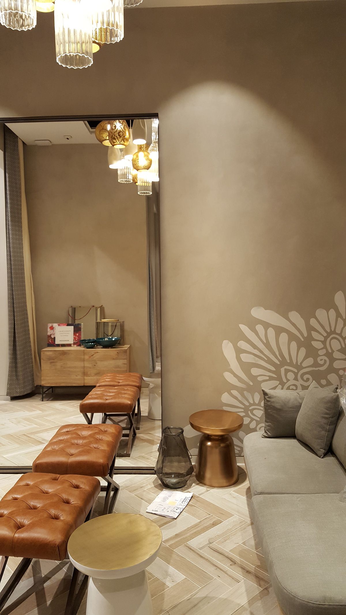 After several Monsoon projects, we finally were able to complete one on our home turf. The most ambitious Monsoon yet, our Venetian polished plaster finishes have yet again set a backdrop for the Monsoon prints and help give the brand its unique style.